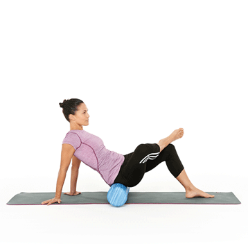 By crossing over your leg, you open up the glute muscles allowing a deep stretch and roll. Rotate your leg to hit all aspects of the glute muscles.